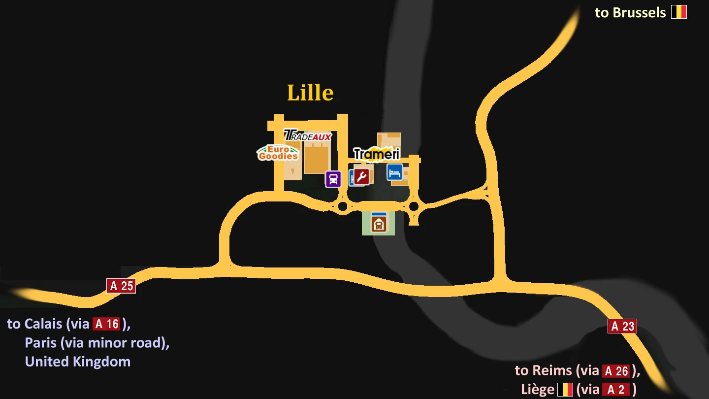 Lille ist eine Stadt in Nord-Frankreich, nahe der Grenze zu Belgien. Sie ist eine der acht französischen Städte die von Beginn an in Euro Truck Simulator 2 enthalten waren.