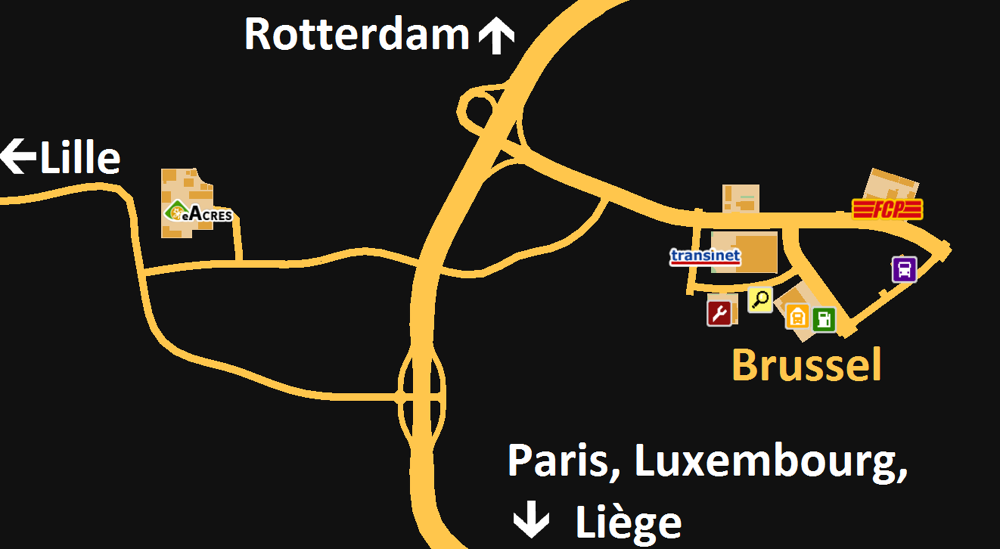 FCP et Transinet ont des dépôts dans Bruxelles. Il y a aussi une ferme EuroAcres à l'ouest de la ville.