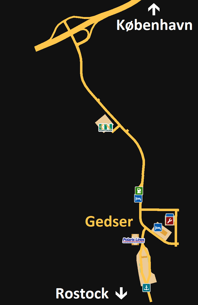 Компания Polaris Lines также предоставляет паром из Гедсера в Росток, Германия.