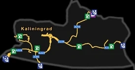 В игре представлена столица области Калининград, а также декоративные населённые пункты Большаково, Краснополянское, Новоколхозное и Советск. Также упоминается город-курорт Зеленоградск.