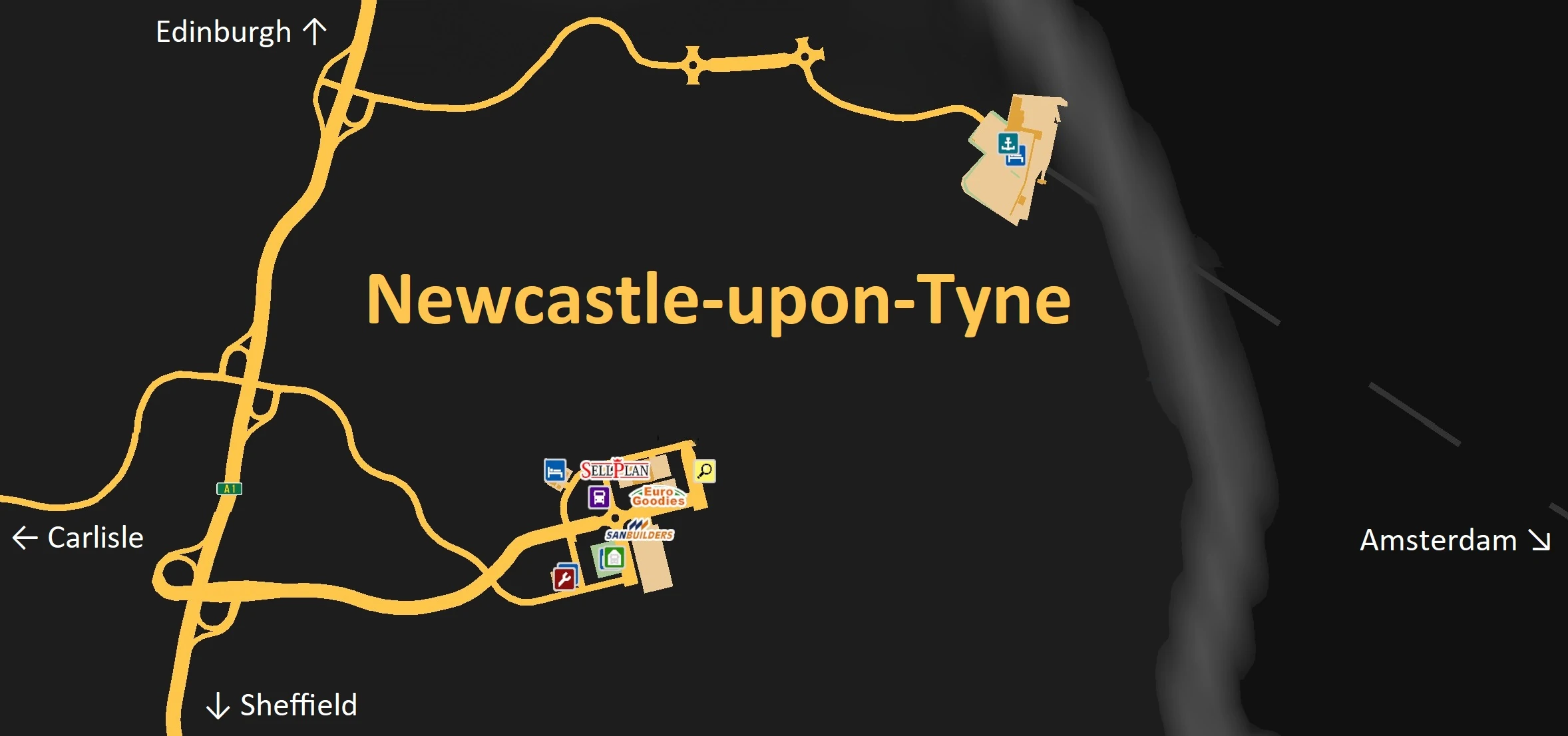 - Города-побратимы Ньюкасла, представленные в играх SCS Software:
