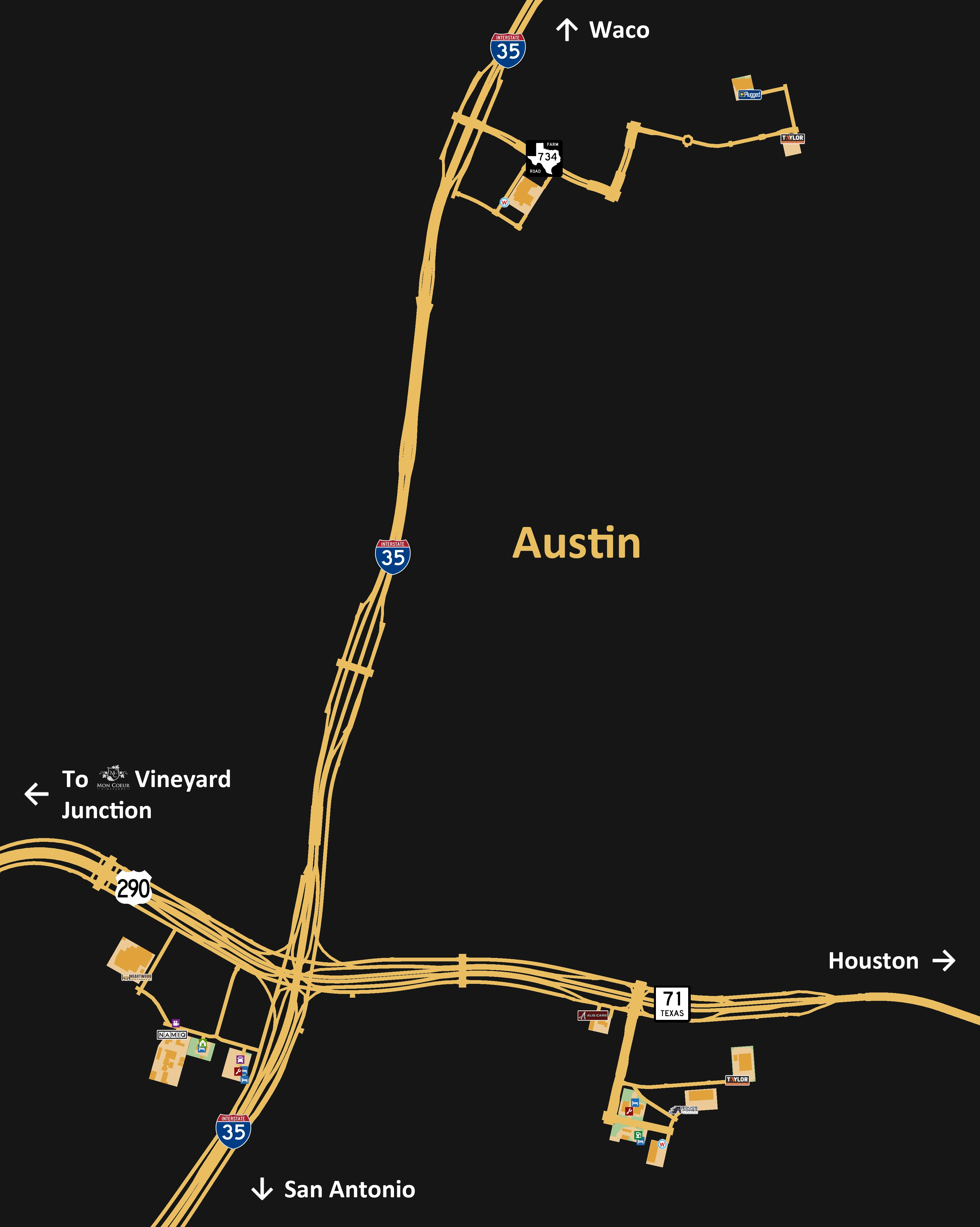 Кроме того, западнее Остина находится виноградник Mon Coeur.