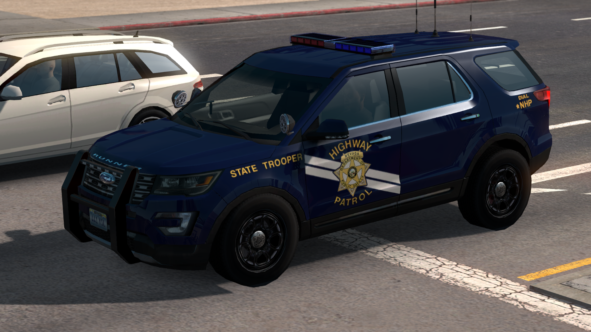 Полицейские машины были добавлены в игру после её выхода, но уникальный дизайн для штатов появился только в обновлении 1.29.