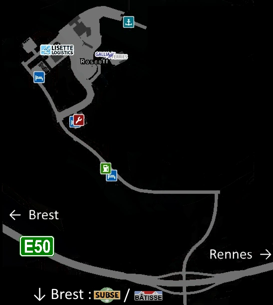 В Роскофе расположены депо Gallia Ferries и Lisette Logistics, а также АЗС, отель и сервисный центр. Кроме того, южнее города находятся строительная площадка Bâtisse и депо Subse, но они относятся к Бресту.