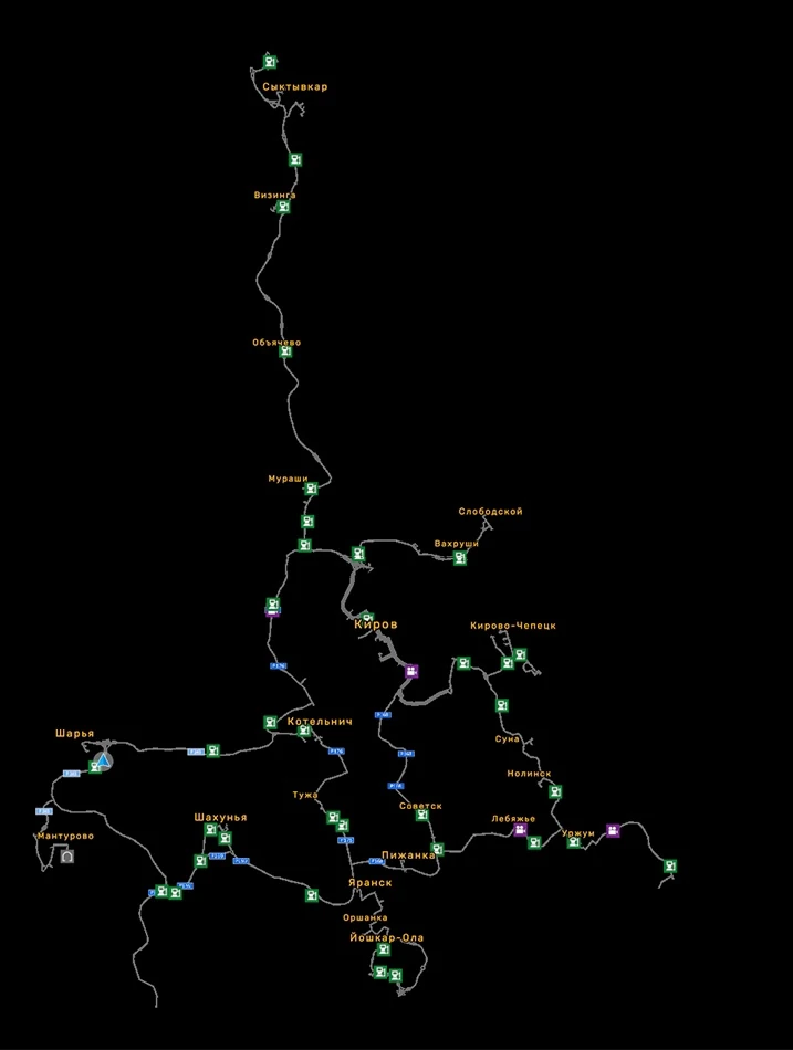 - Версия 1.1 (13 ноября 2021): добавлен г. Яранск, появилась трасса Р243 (Котельнич — Шарья), построена объездная дорога возле Шарьи, прочие исправления.