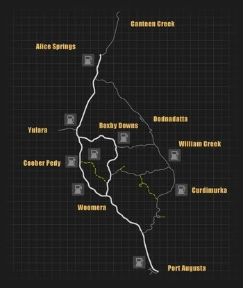 | Cities marked with * is not marked on the map of 18 Wheels of Steel: Extreme Trucker 2 in the Australian Outback map. | |