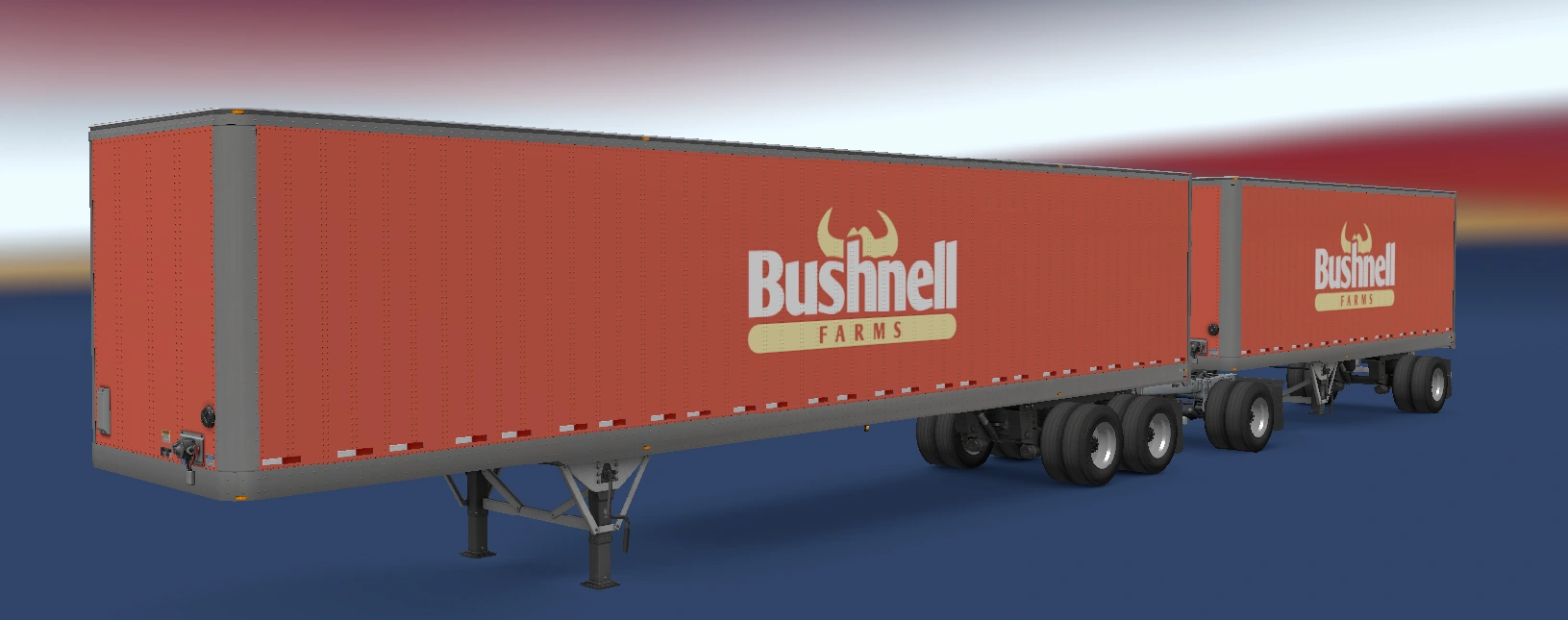 - Bushnell Farms first appeared in the 18 Wheels of Steel series with the same purpose. Its logo originally had a yellow background with the bull having white horns instead of yellow ones and Bushnell Farms in green text.